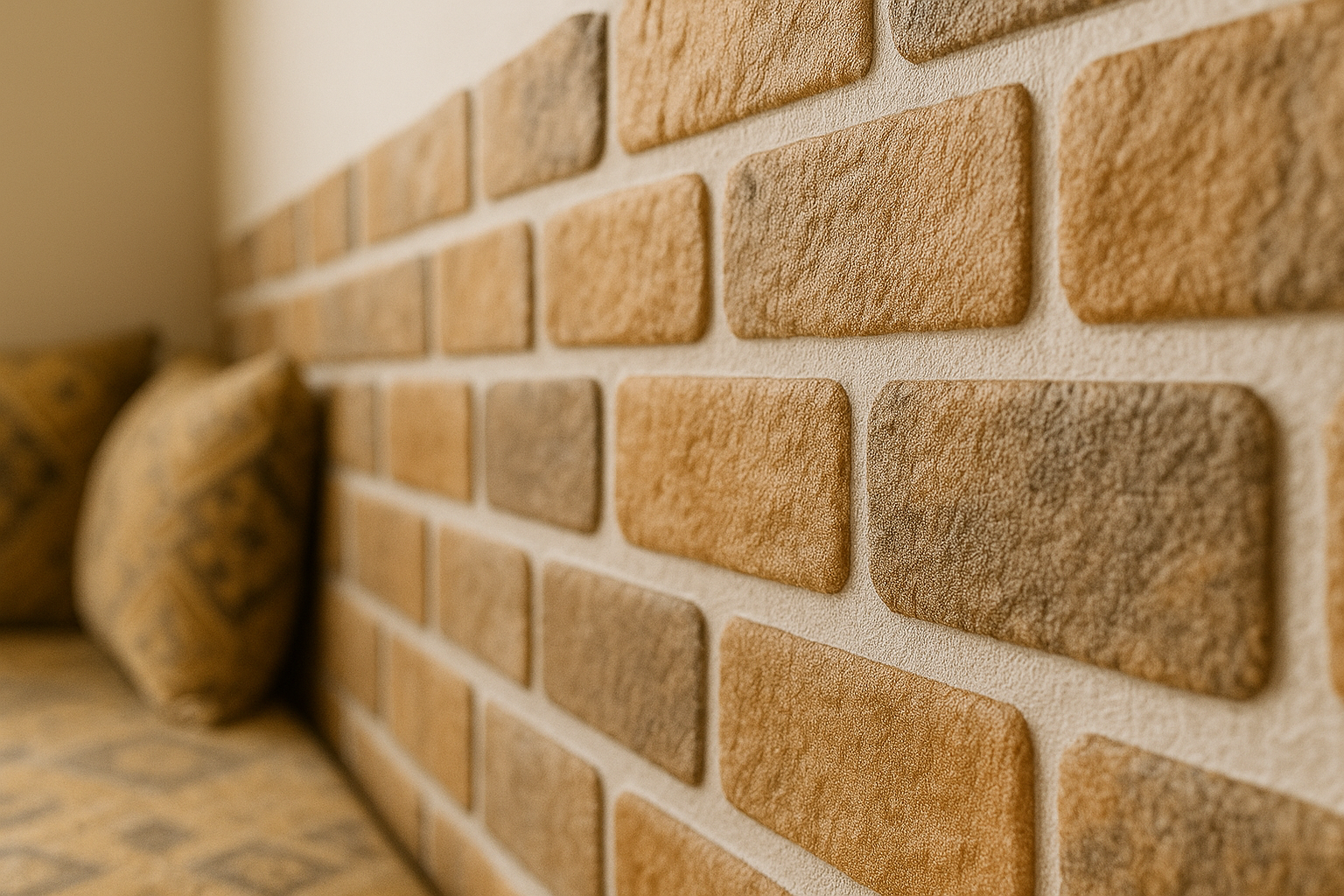 رق حائط بطابع طوب أحمر كلاسيكي، كيعطي للحيط ديال الدار ديالك واحد اللمسة ديال الديكور العصري بحال الحيط مبني بالحجر الطبيعي